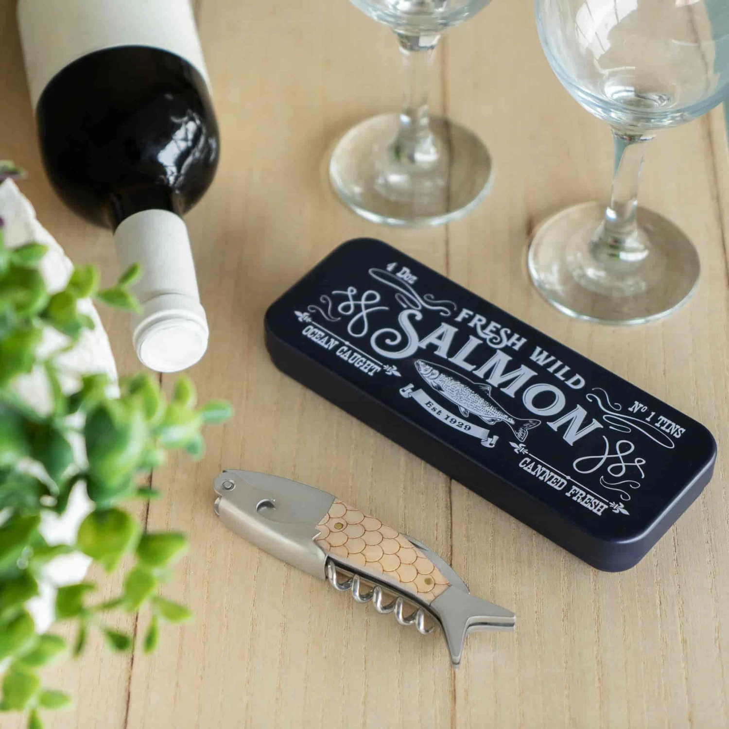 Presented in a beautiful monochrome tin, this unusual corkscrew is an ideal stocking filler or small gift for a friend – especially those who love fishing or seafood.