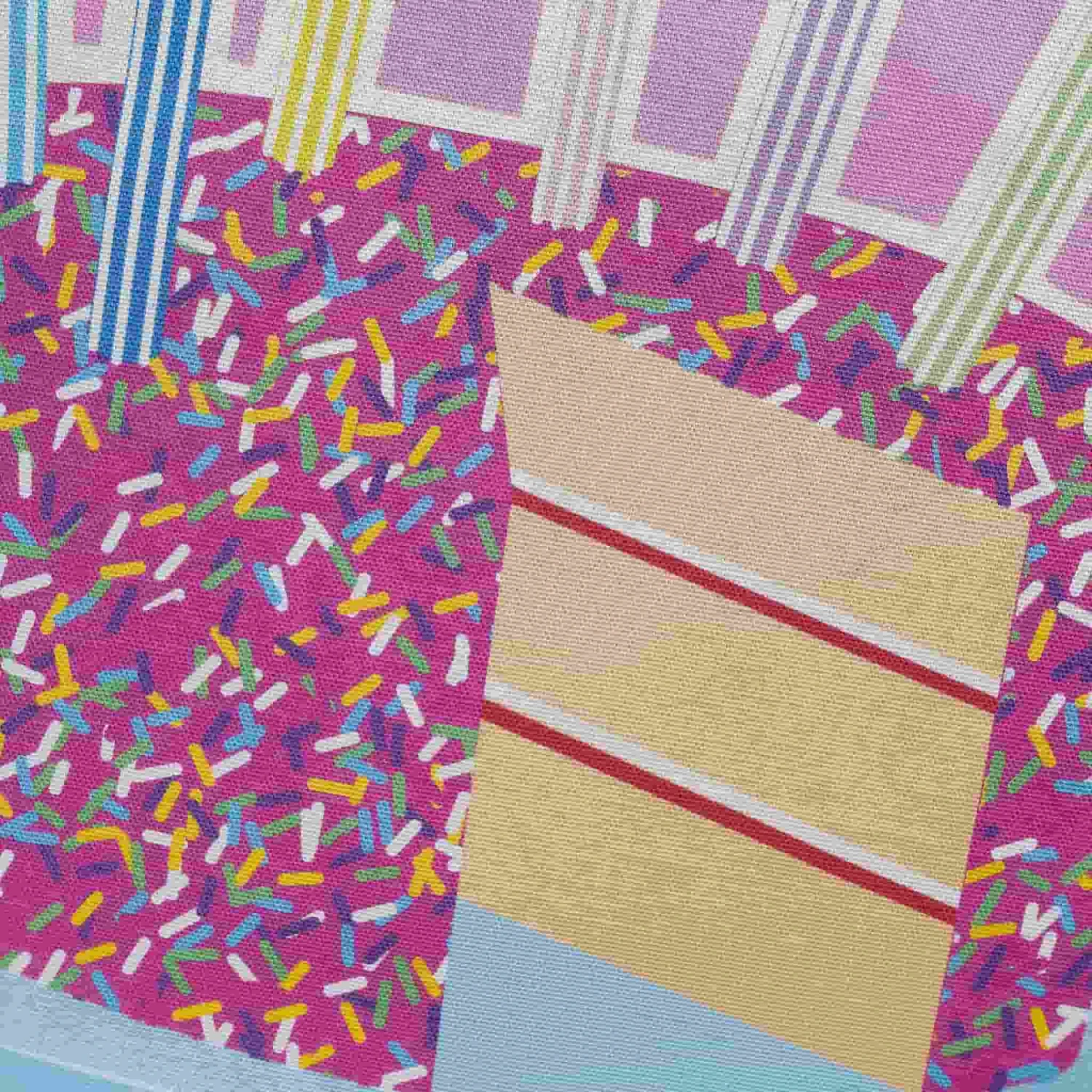 This bright pink tea towel will add a splash of colour to any modern kitchen. It features an illustration of a gorgeous layered cake topped with candles and rainbow sprinkles. It would make a great gift for bakers of all skill levels and food lovers who can never resist a slice of cake.