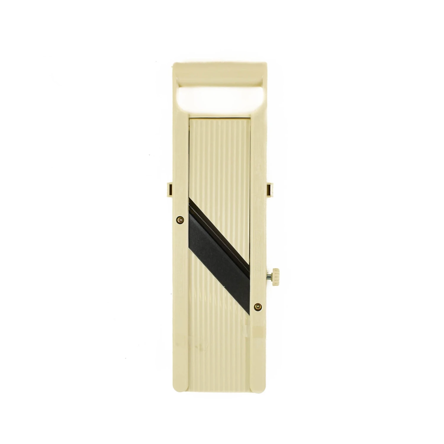 This Japanese mandoline makes fine cutting of fruits and vegetables easy. Achieve any dimension or style of sliced vegetables with this easily adjustable Mandoline. It is efficient and precise in both professional and home kitchens.