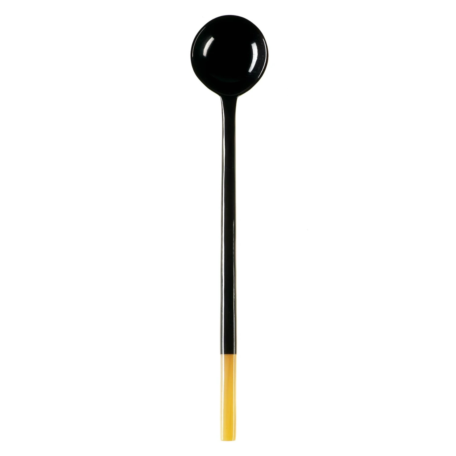 This elegant, long handled spoon is perfect for stirring lattes and eating ice cream sundaes. Made from smooth, polished black horn, this lollipop-shaped spoon can reach the bottom of the deepest jar. Whether you’re mixing a cocktail or adding sugar to a glass of iced tea, this extra-long spoon is a stylish and practical addition to your cutlery drawer.