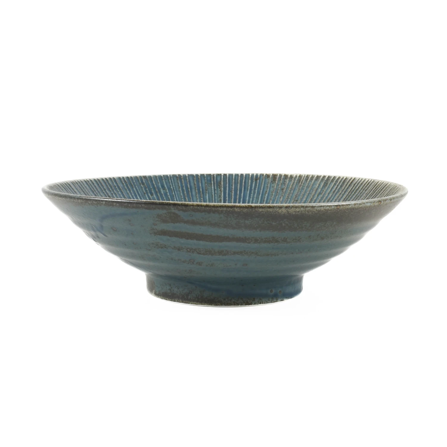 Use the senkei shallow bowl in blue to serve noodles and fried rice. The name senkei is a nod to the linear style design that features on this shallow bowl. Fill the shallow blue bowl with fresh vegetable salads and place in the middle of the table for everyone to help themselves. Or, use them as individual serving bowls for ramen.