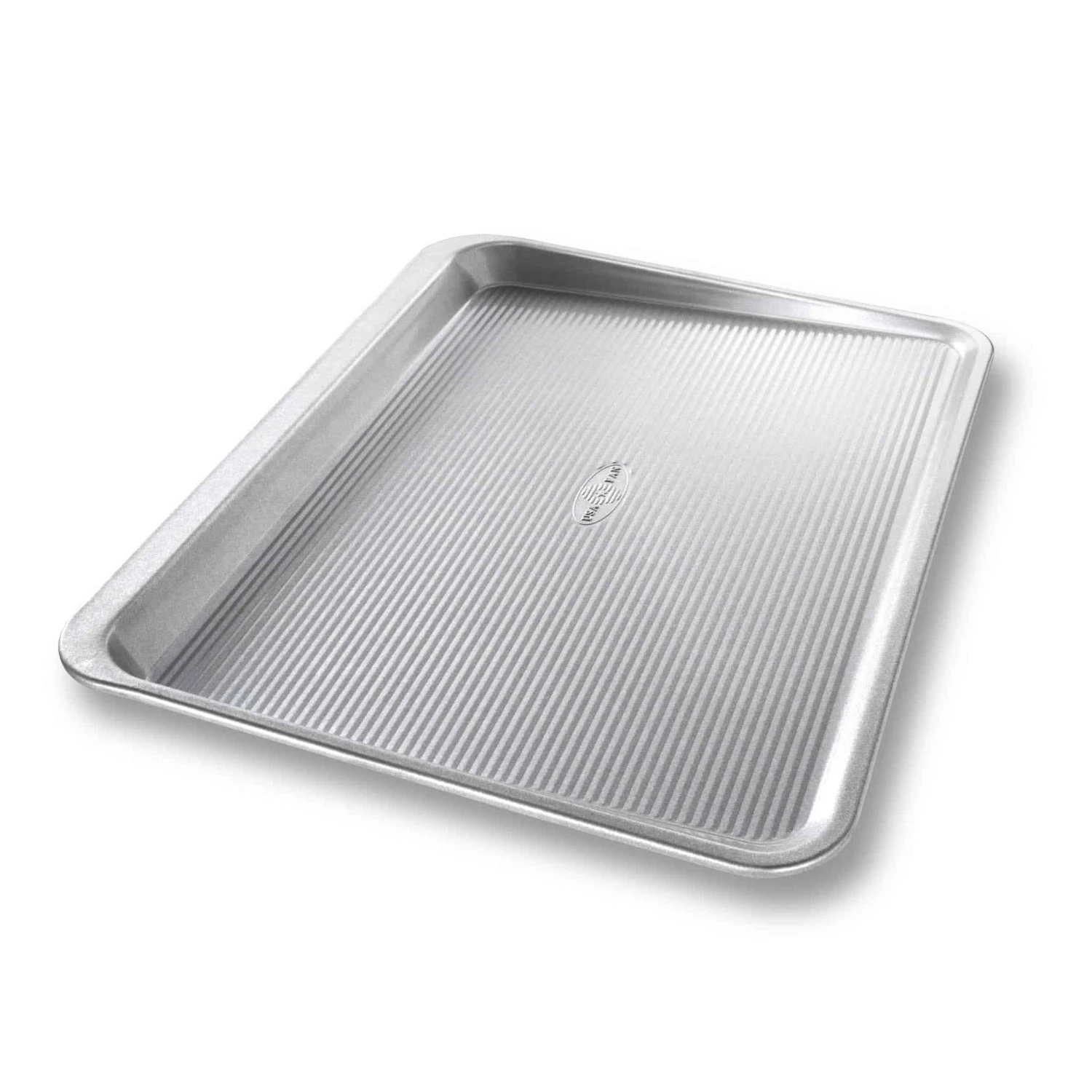 With USA PAN’s large cookie sheet, you can bake cookies that brown evenly and taste great every time. Whether you’re in the mood for chocolate chip or chewy oatmeal, this durable baking sheet makes cooking and clean-up a breeze.
