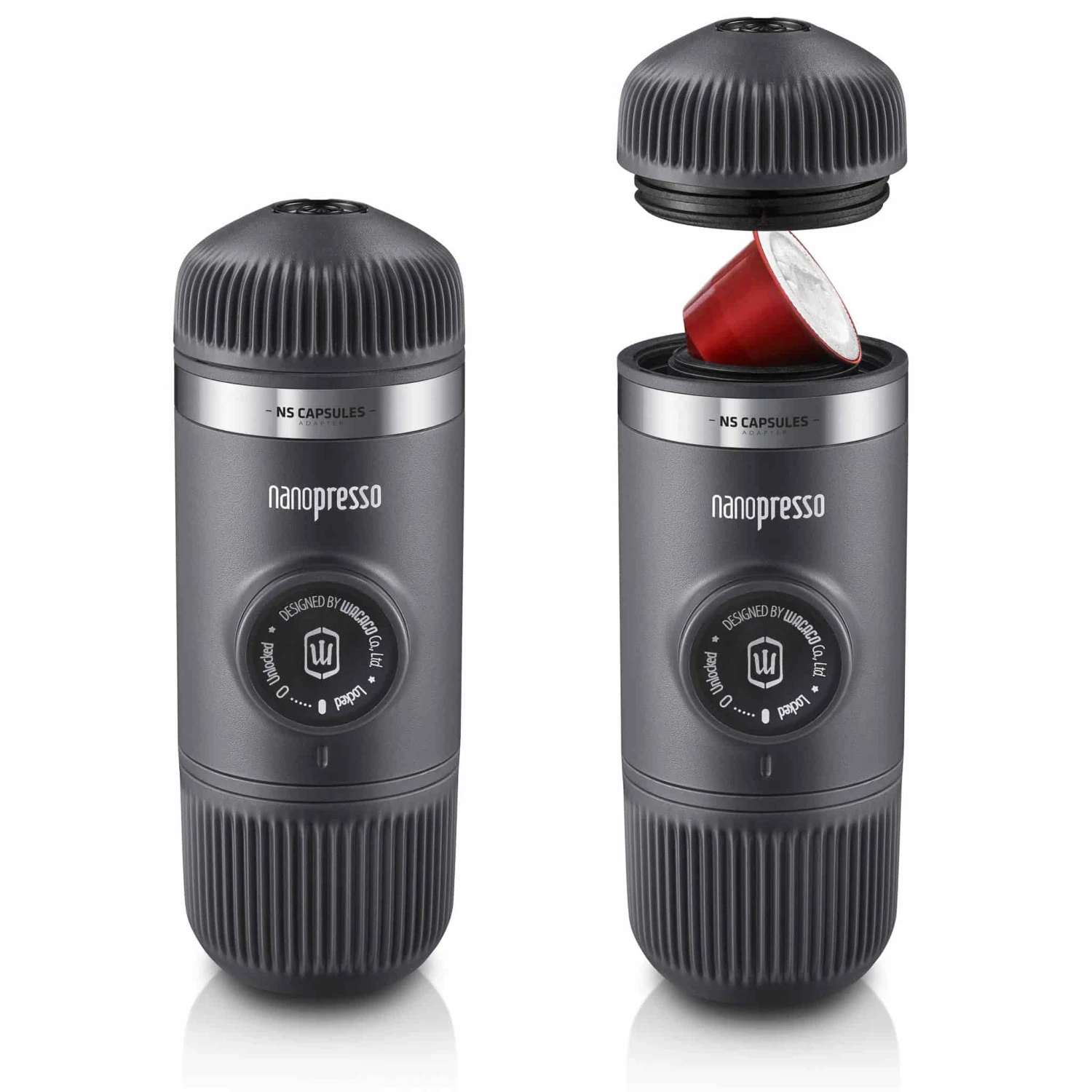 The Wacaco Nanopresso espresso maker with Nespresso adaptor is a must-have accessory for coffee enthusiasts. The lightweight, handheld device delivers a perfect 80ml shot of espresso, wherever you are, without the use of electricity or batteries. Built around a newly patented pumping system, the Nanopresso is capable of reaching, with the help of your hands, a maximum of 18 bars of pressure for unparalleled coffee extractions.